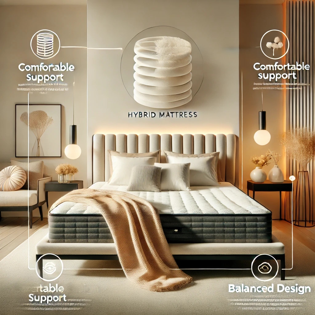 - 지지력: 하이브리드의 구성에 따라 다르지만, 일반적으로 몸 전체를 고르게 지지하며 척추 정렬을 유지합니다.